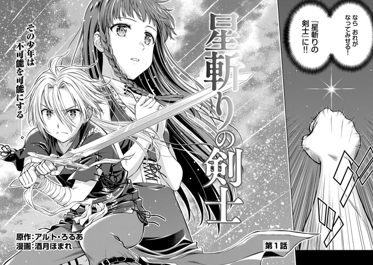 不可能を可能に!!分厚い障害(かべ)を!限界を!常識すらぶっ壊して進めッ!!ひたむきに夢追う少年の剣戟成長ストーリー!!平凡な村人、ユリウスが8歳の誕生日に見た夢。それは彼の運命を変える体験だった。立ち向かう者を悉く斬り捨てる、夢の中の無双の剣士。彼が本当に斬りたかったのは、夜空に煌めく星だった。結局、剣士は星斬りを果たせず、少年は記憶の中の剣士の軌跡を反芻し来る日も来る日も棒切れを振り続ける…ひたむきに夢追う少年の剣戟成長ストーリー、堂々のコミカライズ!